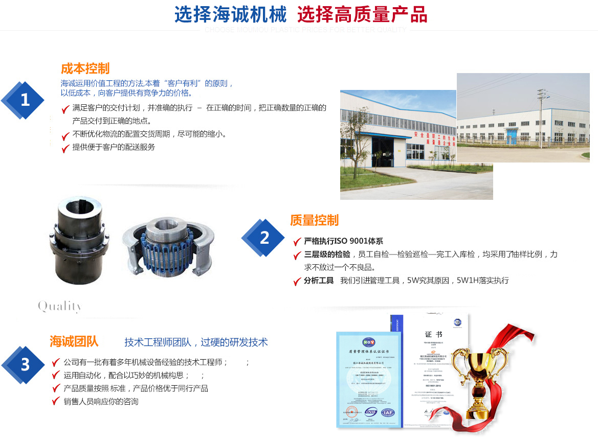 鎮(zhèn)江海誠(chéng)機(jī)械制造有限公司 開(kāi)辦于1991年,是開(kāi)發(fā) 聯(lián)軸器 、 萬(wàn)向聯(lián)軸器 、 鼓形齒式聯(lián)軸器 、 膜片聯(lián)軸器 的企業(yè)。歷經(jīng)二十多年的發(fā)展,已成為服務(wù)于鋼鐵冶金、石油、礦山、化工、生物、制藥等行業(yè)的大型企業(yè)集團(tuán),為客戶(hù)設(shè)計(jì)、制造各種非標(biāo)產(chǎn)品、設(shè)備。 鎮(zhèn)江海誠(chéng)機(jī)械制造有限公司總部位于中國(guó)傳動(dòng)機(jī)械產(chǎn)業(yè)化基地之江蘇鎮(zhèn)江,鎮(zhèn)江海誠(chéng)機(jī)械制造有限公司有總資產(chǎn)8000多萬(wàn)元。鎮(zhèn)江海誠(chéng)機(jī)械制造有限公司總占地面積...